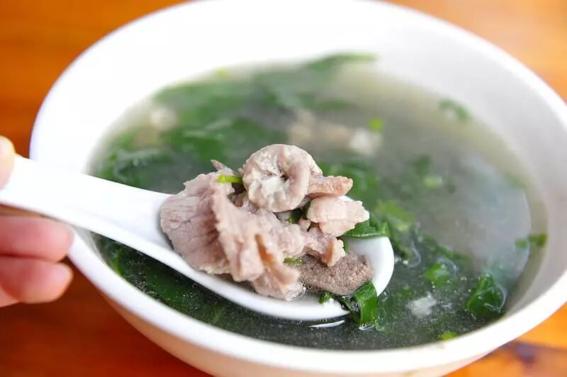 枸杞猪杂汤的味道稍微清淡些,里面是满满的粉肠、瘦肉和猪肝,用料新鲜,这样一碗面加一碗汤的套餐,也才16元一份。