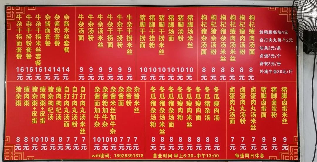 若觉得干捞面太干了,也可以尝尝他家的牛杂汤粉和枸杞猪杂汤河粉。面条、河粉和米丝,都是看个人口味。