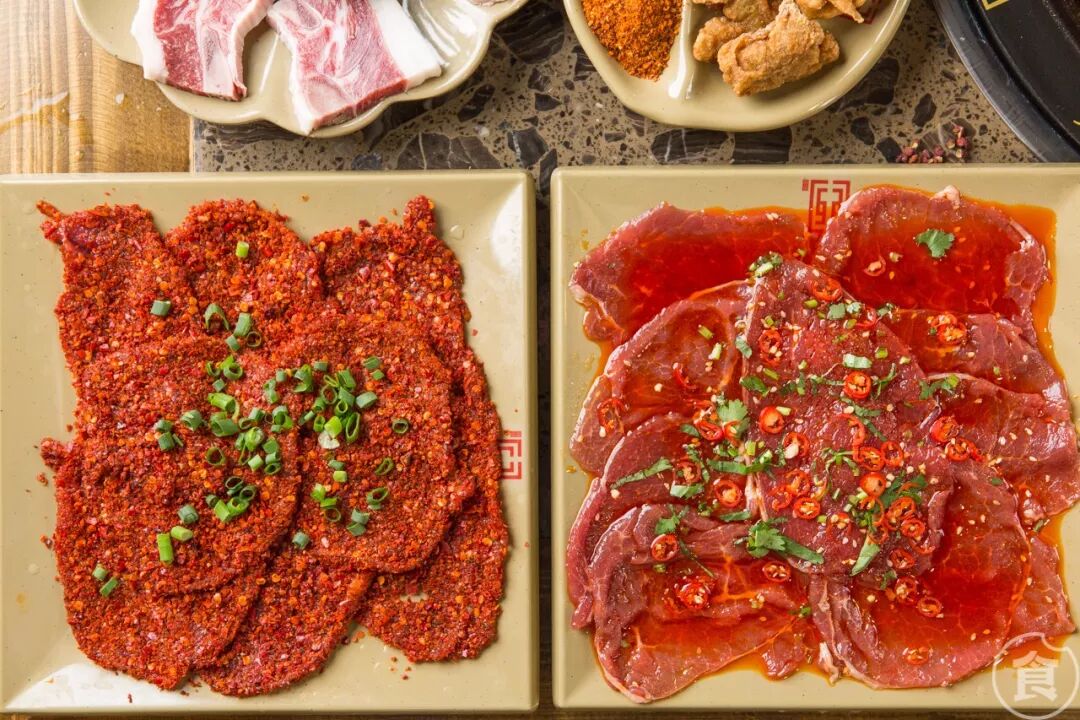 这2款牛肉都让人欲罢不能,可以说是很受大众欢迎。两款牛肉都经过提前腌制,一款辣到喷火,一款嫩得出汁。