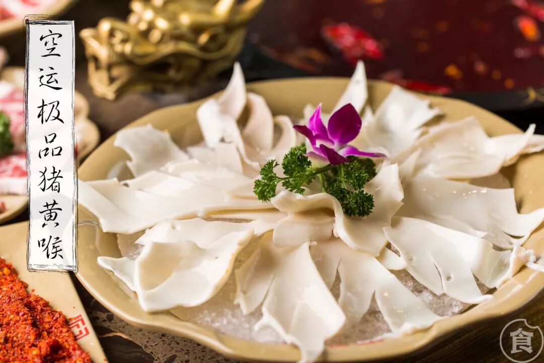 这道代表着重庆火锅的美食名片-猪黄喉,只需涮煮30秒,还你柔韧有嚼头的口感。