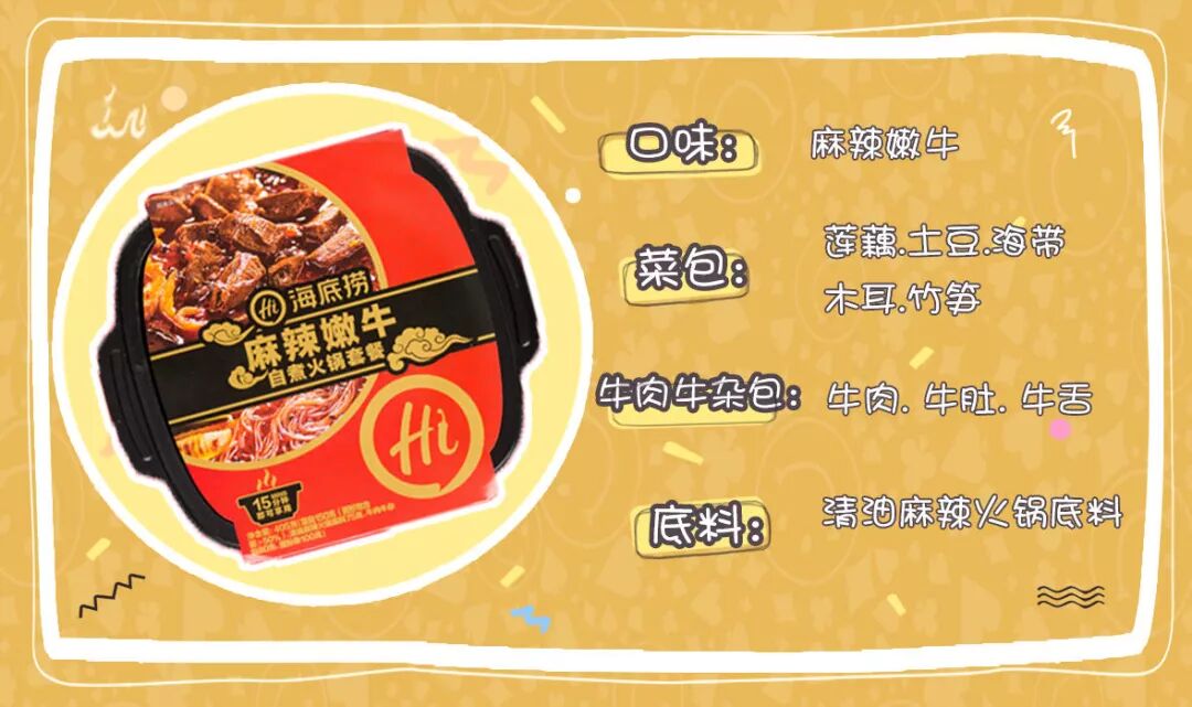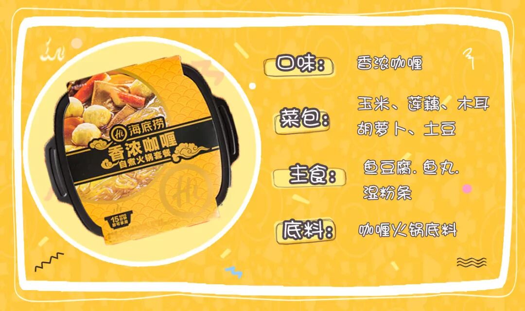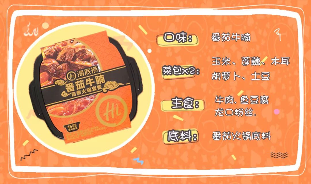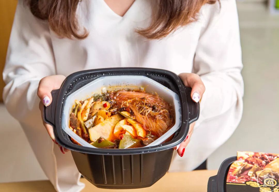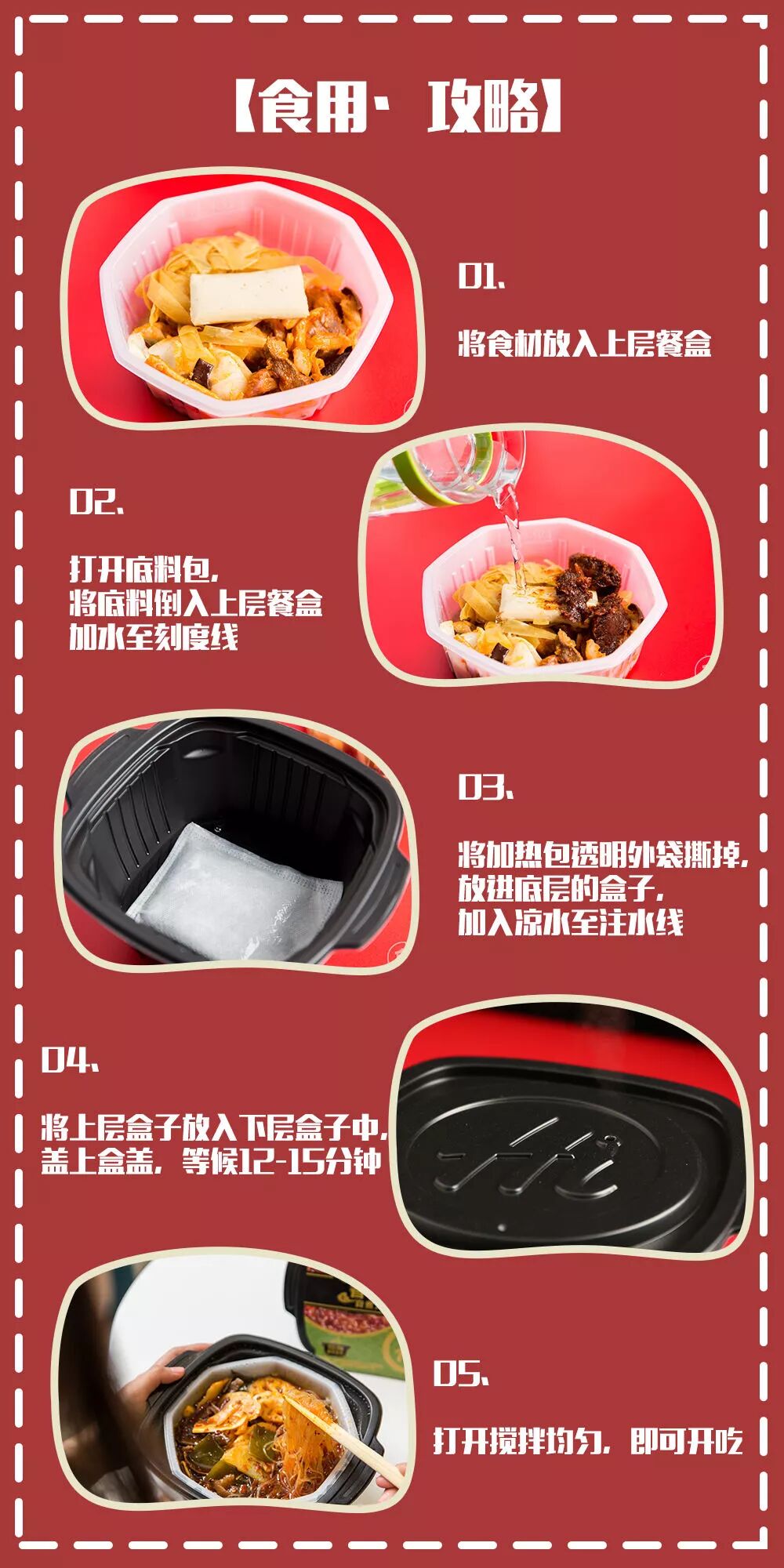 一款可以随身携带的方便食品,由火锅底料和各种荤素搭配的食材组成,采用自加热技术,只需一瓶矿泉水,就能吃到热气腾腾的火锅。