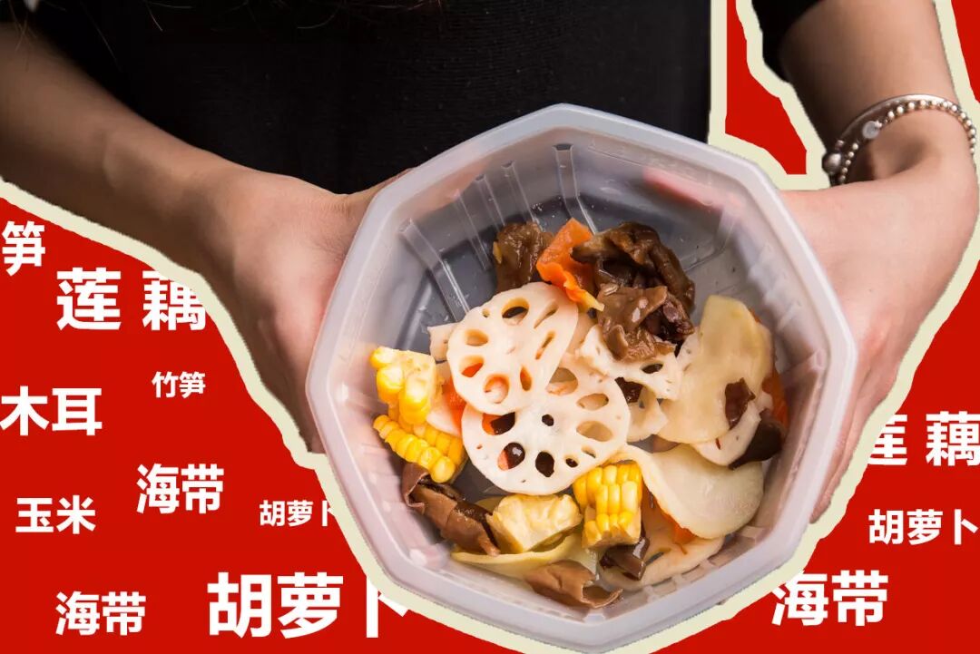 每一盒自煮火锅里都会有真空包装的素菜包和肉类包