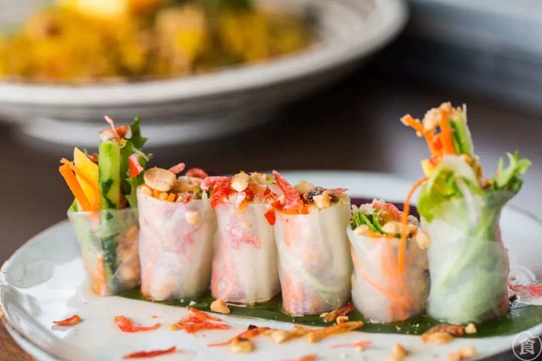 用越南的糯米纸,卷入新鲜的素菜、肉丝等食材,外糯里脆的口感,非常清新开胃。