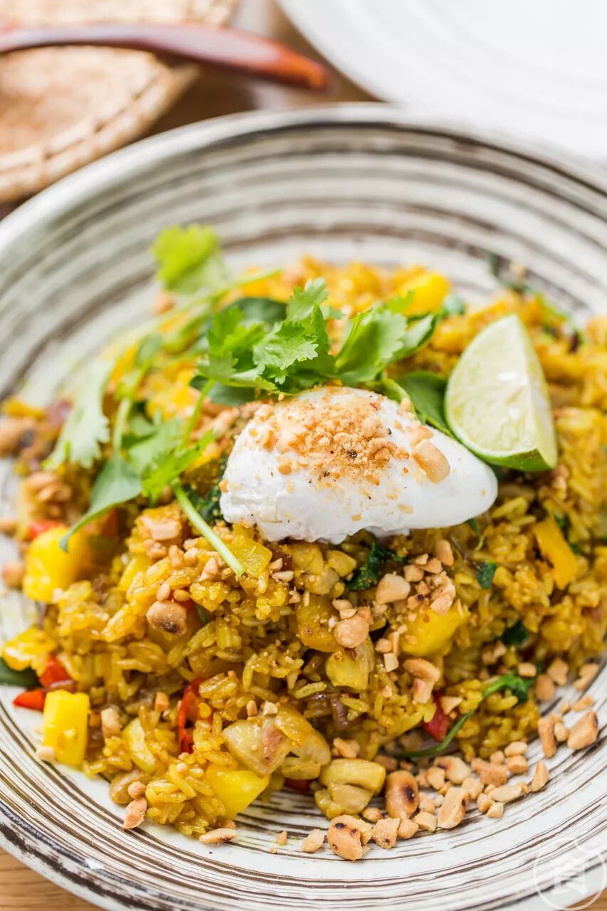 充满异域风情的菠萝鸡肉炒饭,它酸甜的味道在嘴里绽放,比起普通的炒饭,它吃起来不会有腻感。