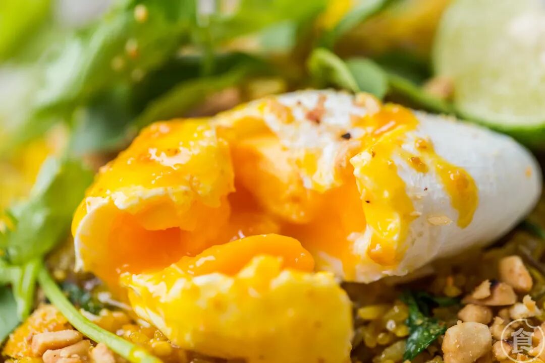 最让人惊喜的是,炒饭上面这颗糖心蛋。吃之前将它切开,与米饭一起食用口感会更好~