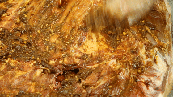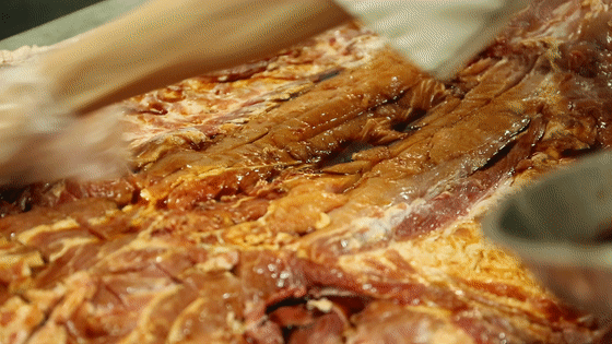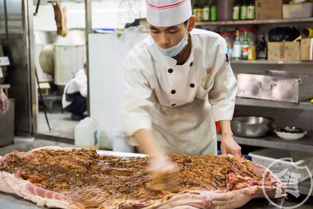 为了使肉更入味,大厨通常会将肉戒开十字形状,让腌制调料完全吸收到肉里去。当大厨为这些猪猪“按摩时”,双手来无影去无踪,就知道他的手法多纯熟啦!