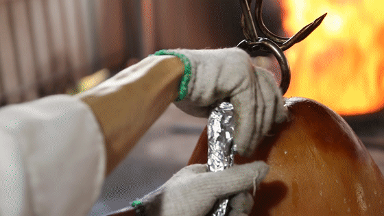 这时候,大厨会用“秘密武器”给猪猪的表皮松针,每一块地方都被烙下了印记。