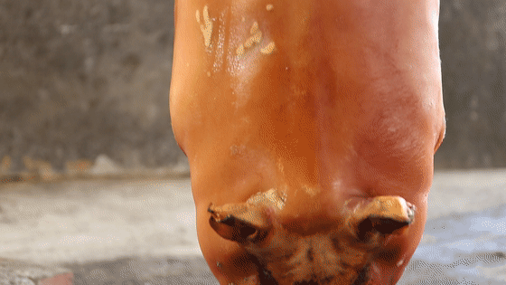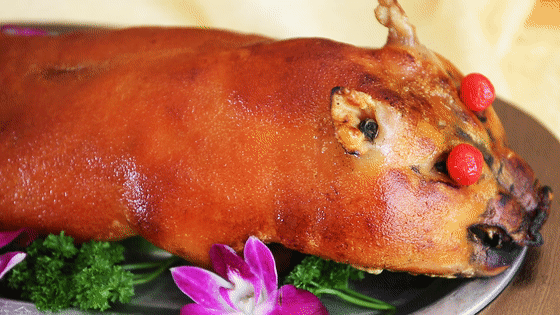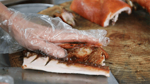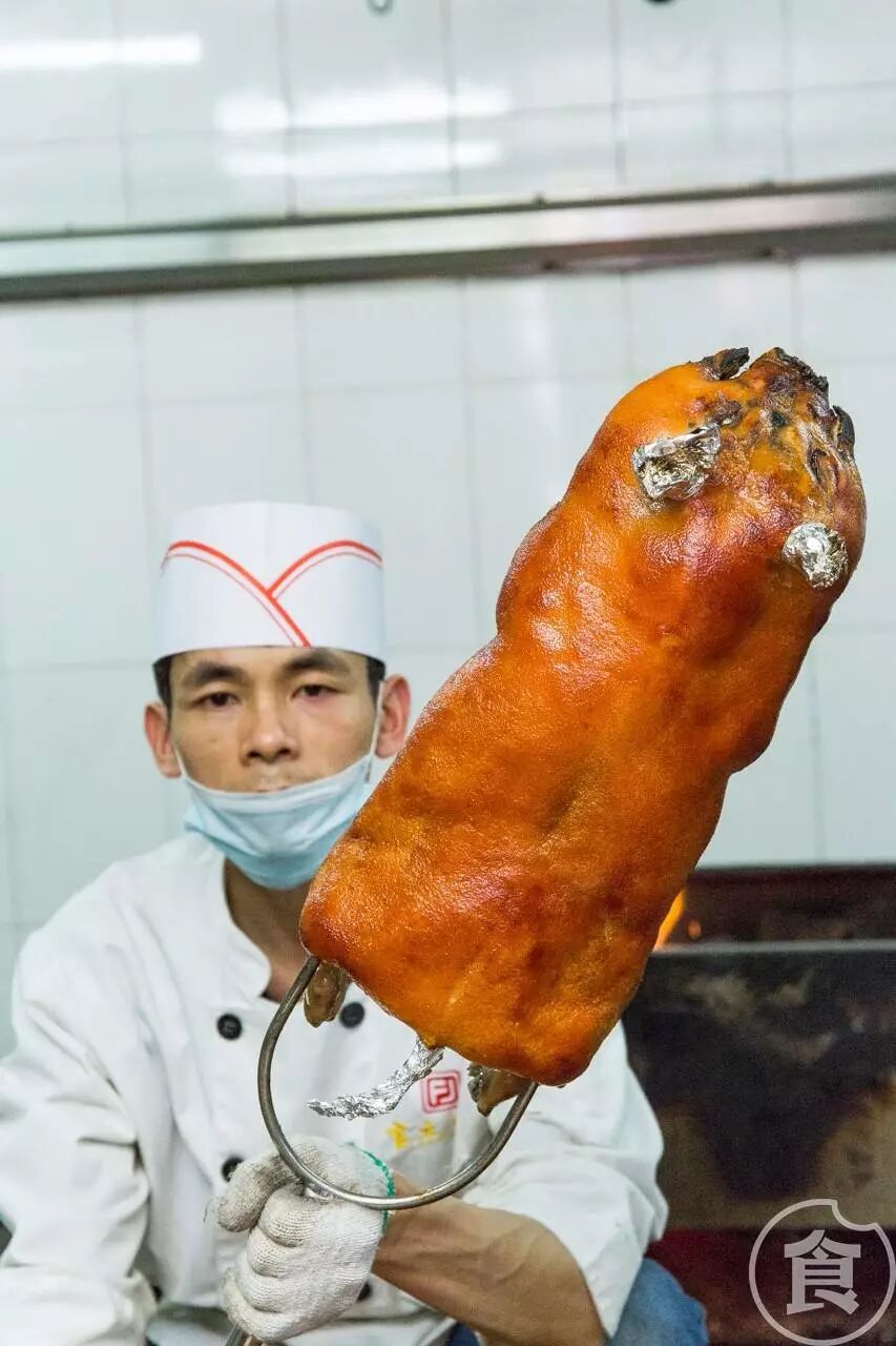 当得知这位大厨从17岁开始学烤乳猪,直到现在已经十几年了,不仅让人觉得佩服。看!这烤好的乳猪,是否馋得你口水都流下来。