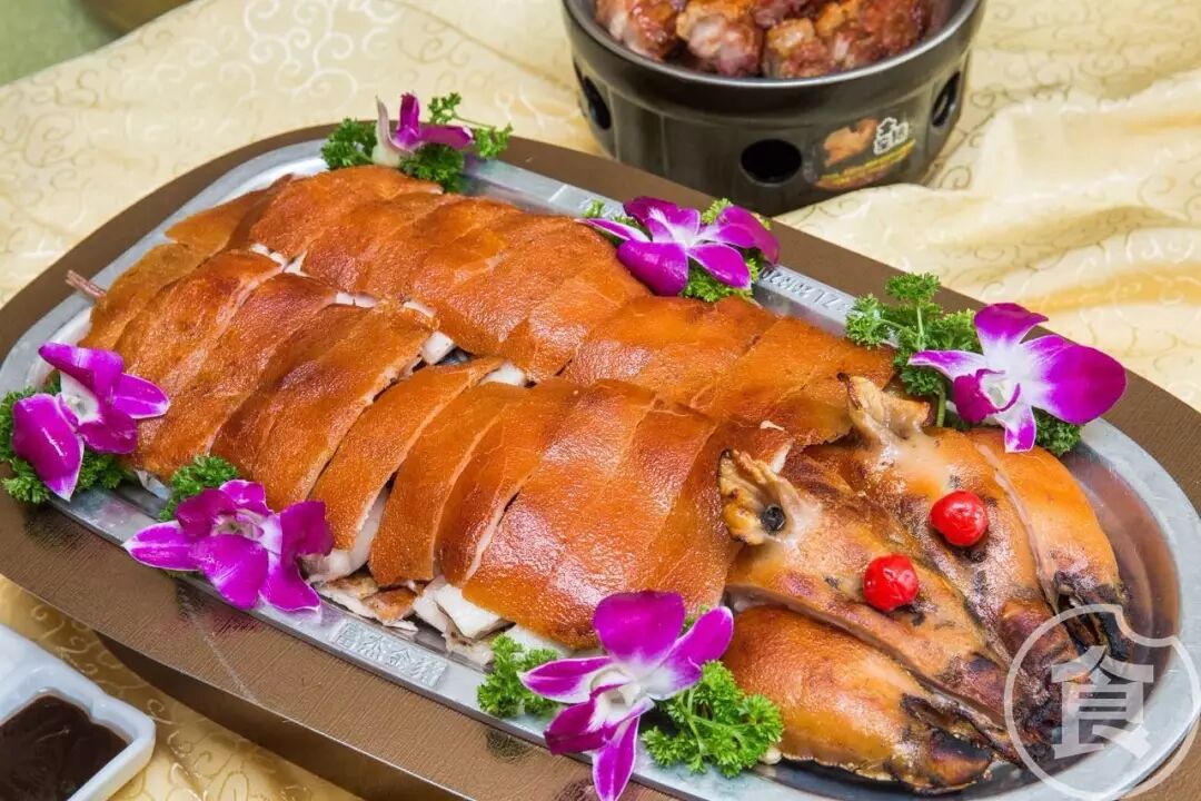 当这金黄油亮的烤乳猪摆好盘之后,可以说是大功告成了!一直以来,烤乳猪无论是在宴席上还是清明祭祖,永远都独占鳌头,霸气十足。