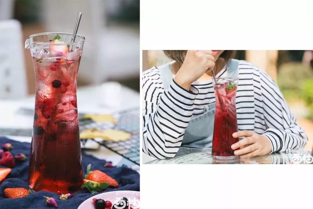 酸酸甜甜的玫瑰莓果花园,原来还能这样喝。酒红色的花茶看上去清新诱人,在这闷热的天气里, 好好享受一下这场花和果的浪漫邂逅。