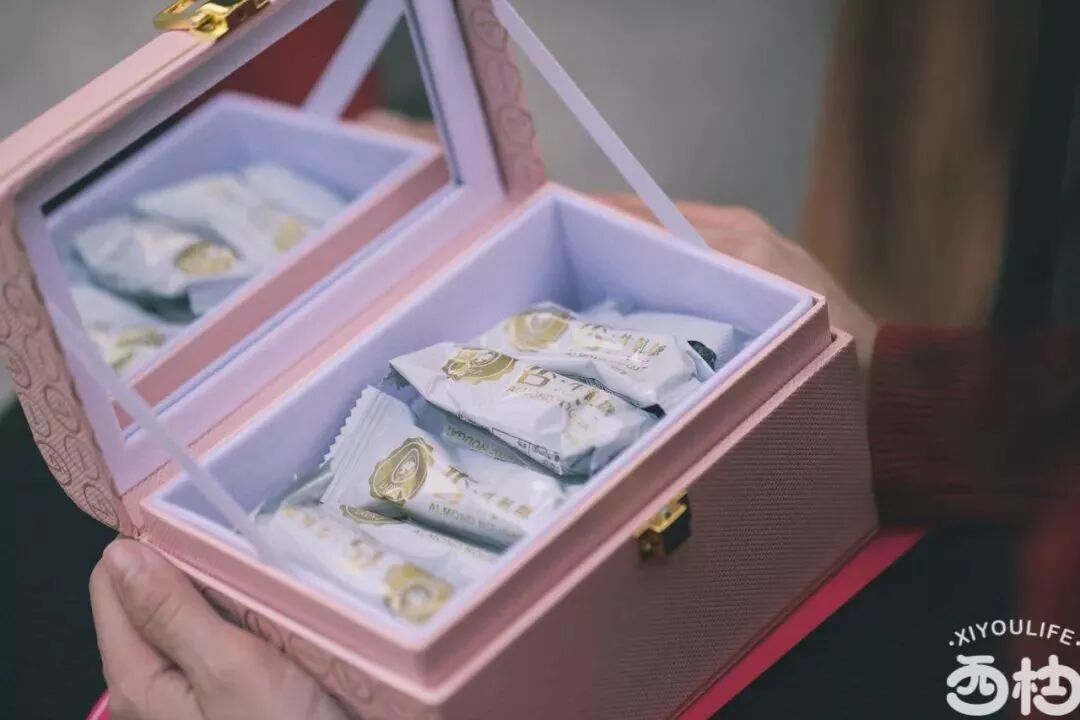 哪怕是吃完里面的牛轧糖,盒子还能留下来当化妆盒。只要你看到这个盒子时,就会想起我。