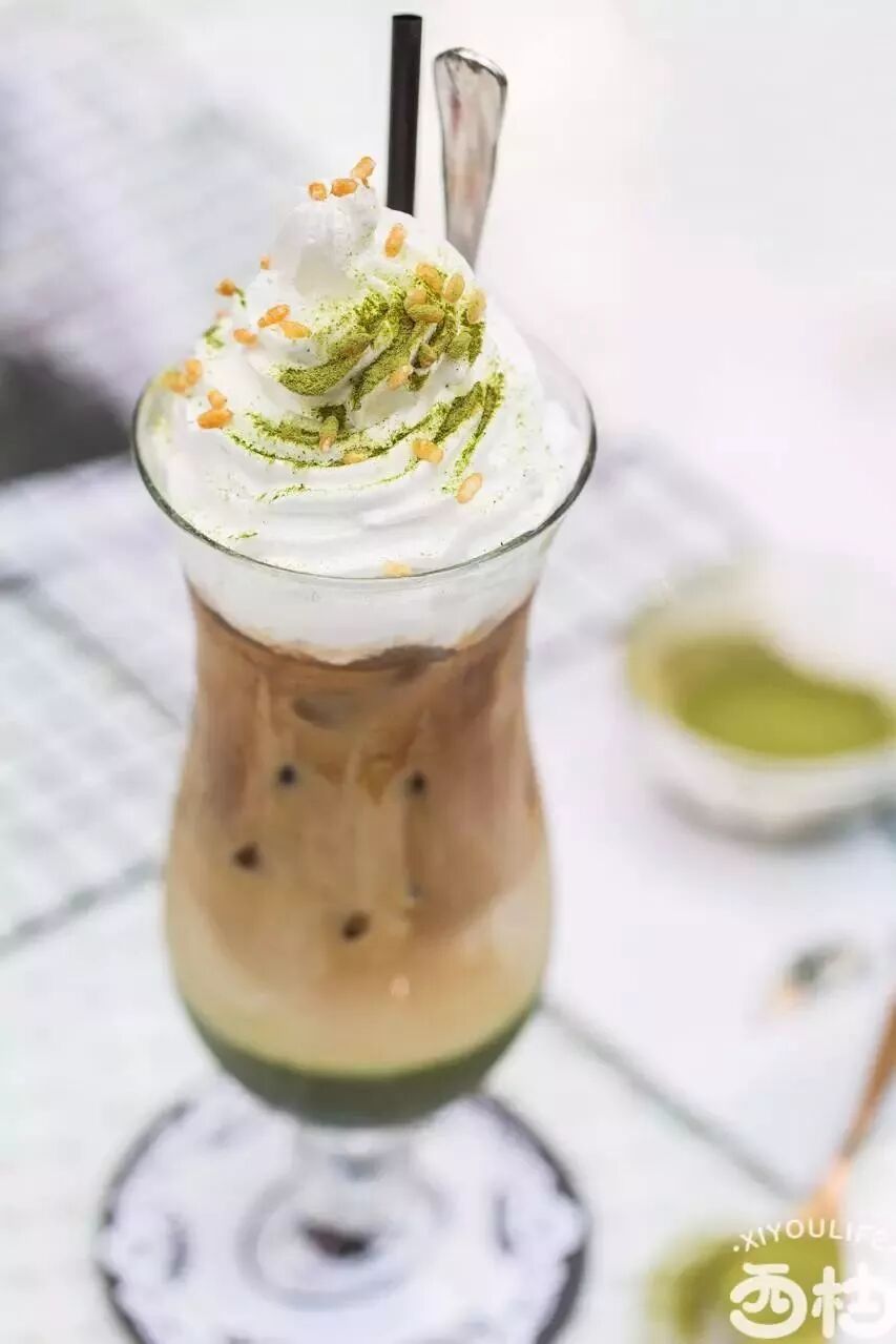 来自日本的宇治抹茶和咖啡的浓郁相结合,让人总能在这个午后,感觉到特别惬意。