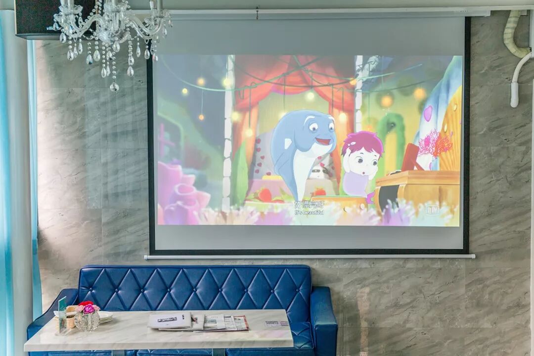 还有投影仪,为这室内增添不少欢乐色彩。平时会播放电影,如果你想和女神表白或求婚,这块投影仪照样能帮得上你的忙!