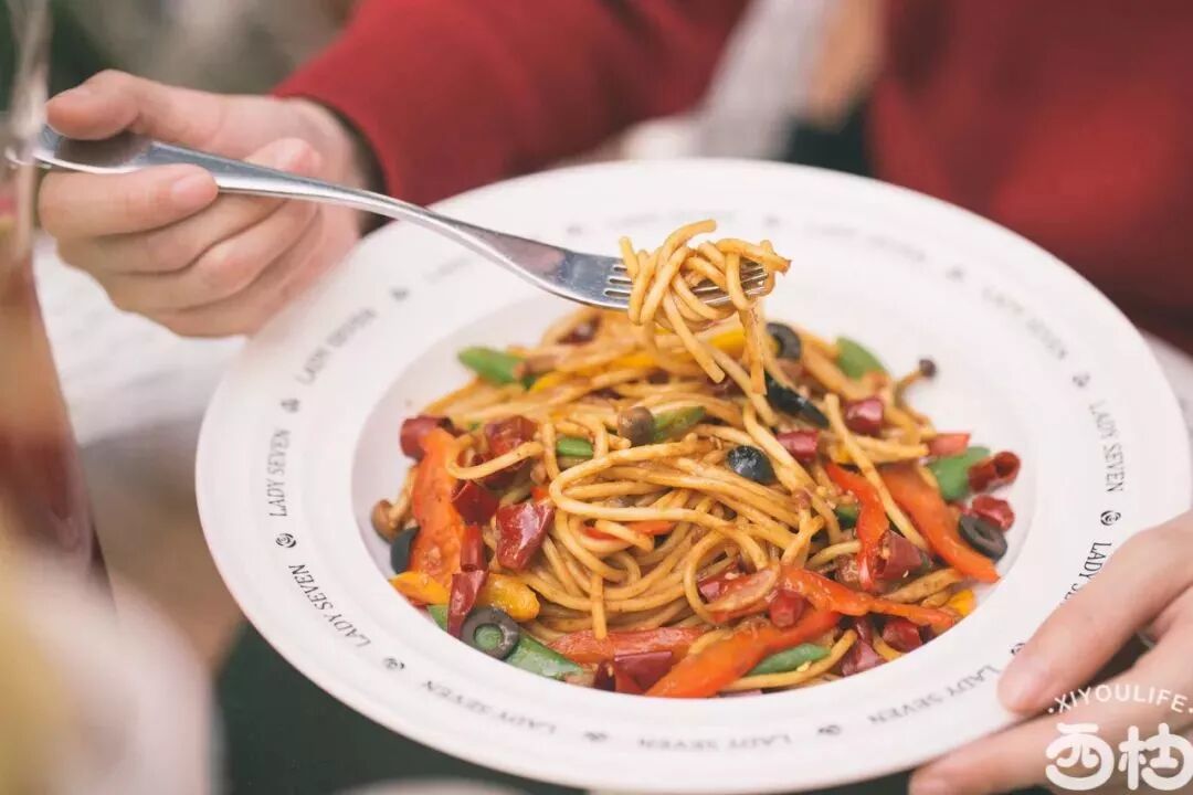 除了米饭的香糯,还有N款爽滑的意粉。这款蒜片蟹肉辣面,口感偏甜辣,搭配的蒜片和蟹肉,口感丰富。还有菌菇的香气弥漫着,口感独特。