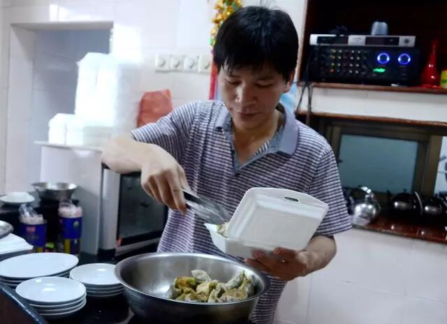 老板每天都忙着为客人打包饺子,5元六个装一碟,但是通常来到这的客人,都会十几二十元带走,吃之前蘸上白醋的煎饺,味道会更好。