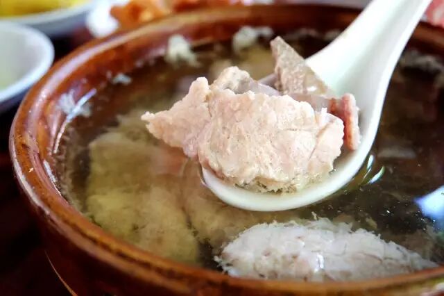 最后上碗钵仔猪肉汤,猪肉汤里有瘦肉和粉肠,份量还挺足!但感觉加入胡椒粉和葱花,会更加入味。