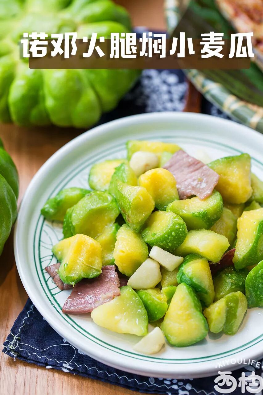 小麦瓜是云南特有的蔬菜,清淡爽脆带有淡淡的甜味。诺邓火腿更是名声大噪,还曾被《舌尖上的中国》记录报道。两者的结合,健康又营养。