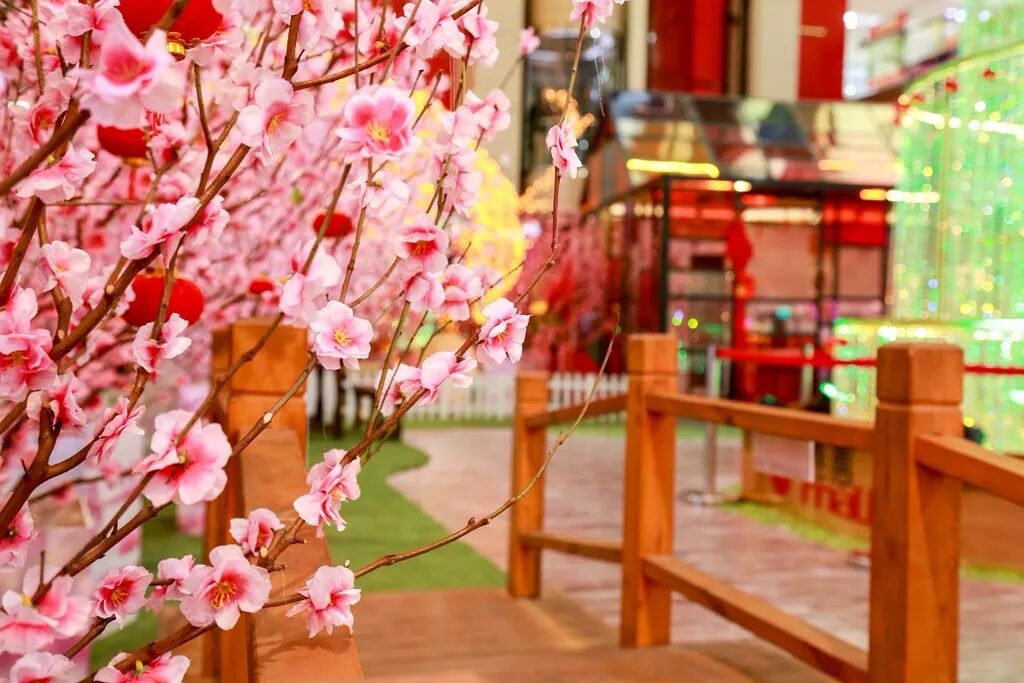 粉粉的春节桃花布置已经在这里了,只等跟你偶遇啦。
