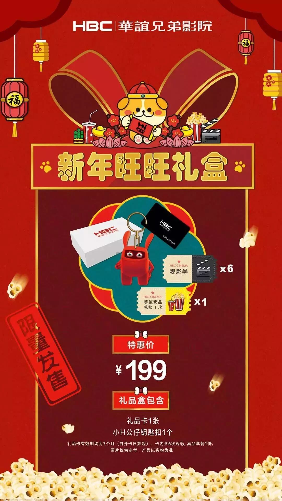 华谊影院N部贺岁片齐聚春节档,只为贺新年。199元可享6次观影,更有礼品卡及公仔钥匙扣等礼品等你拿走。