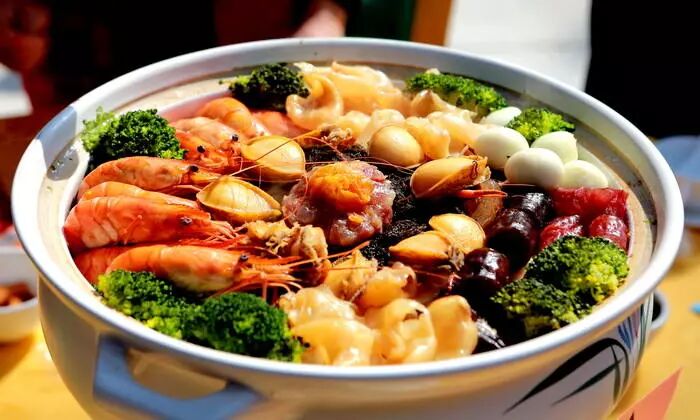 永记腊味和鲍鱼、海参、鱼肚、鲜虾、鸡等食材一起烹饪的大盘菜,让人口水直流。但是记得提前预定哦!