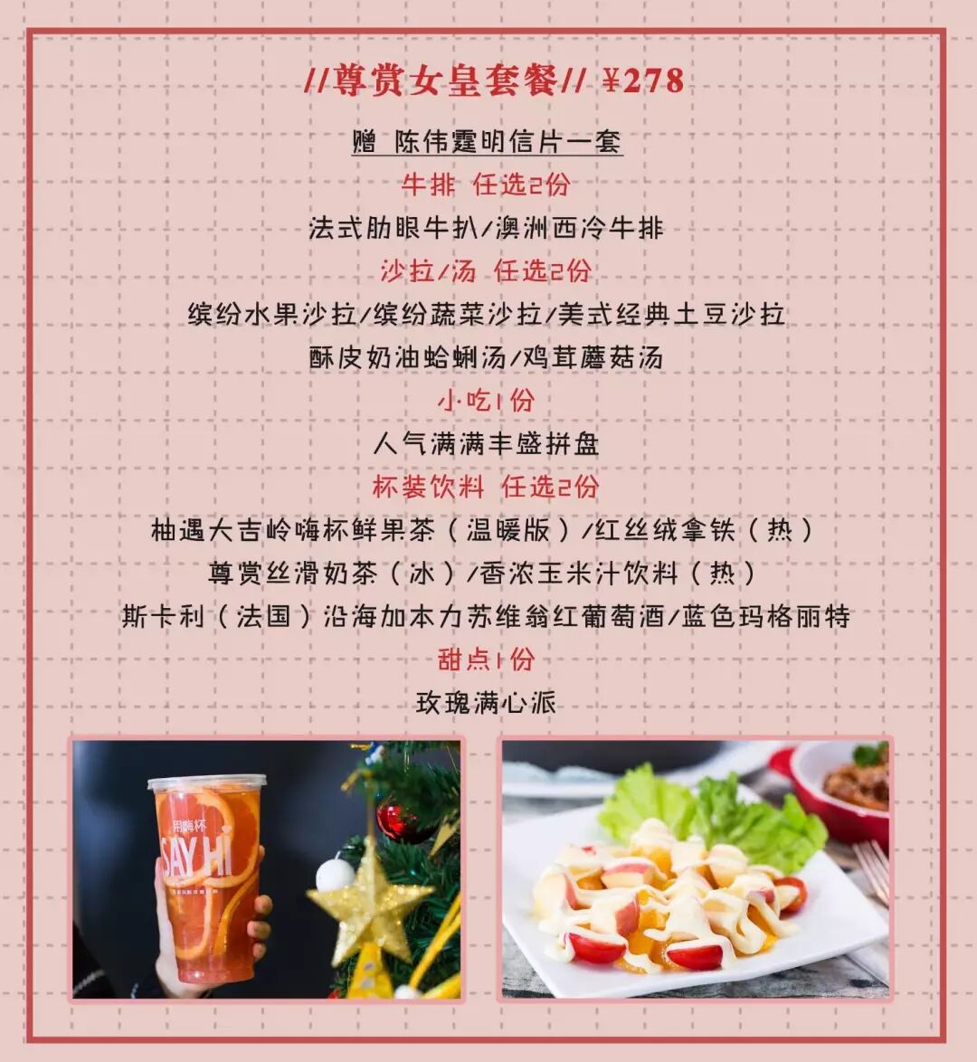 女朋友可能会很喜欢这一次约会哦。因为买宠爱女皇套餐和尊赏女皇套餐会送一套陈伟霆明信片呀!