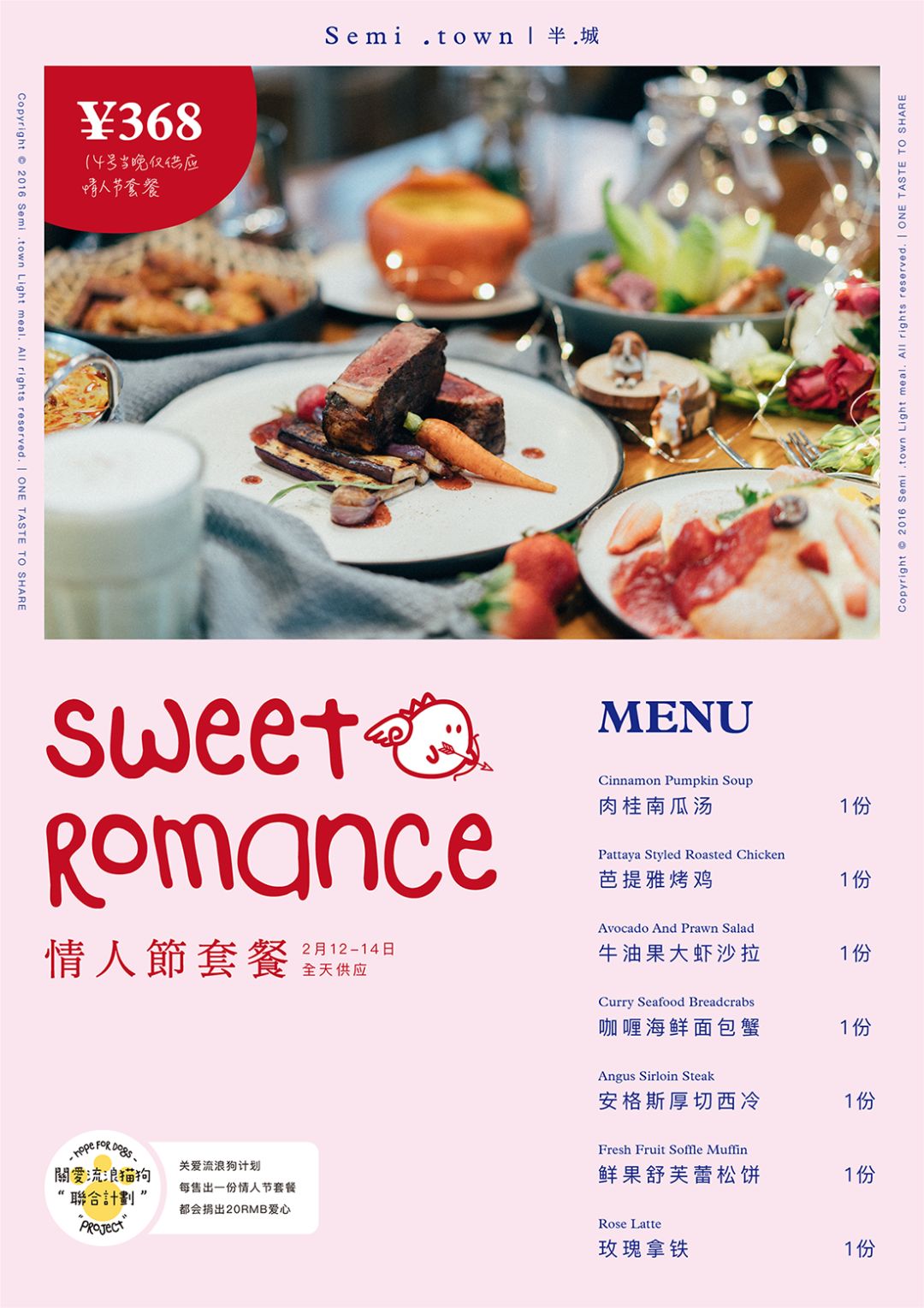 这个情人节一起做点不一样的事情吧。他们从12号开始售卖情人节套餐,每卖出一份就会捐赠20RMB给流浪猫狗。