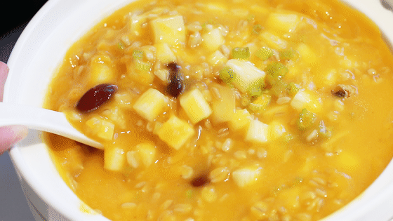 南瓜汤是下足材料大火熬制八小时的,加入了五谷杂粮,营养搭配更是加分。