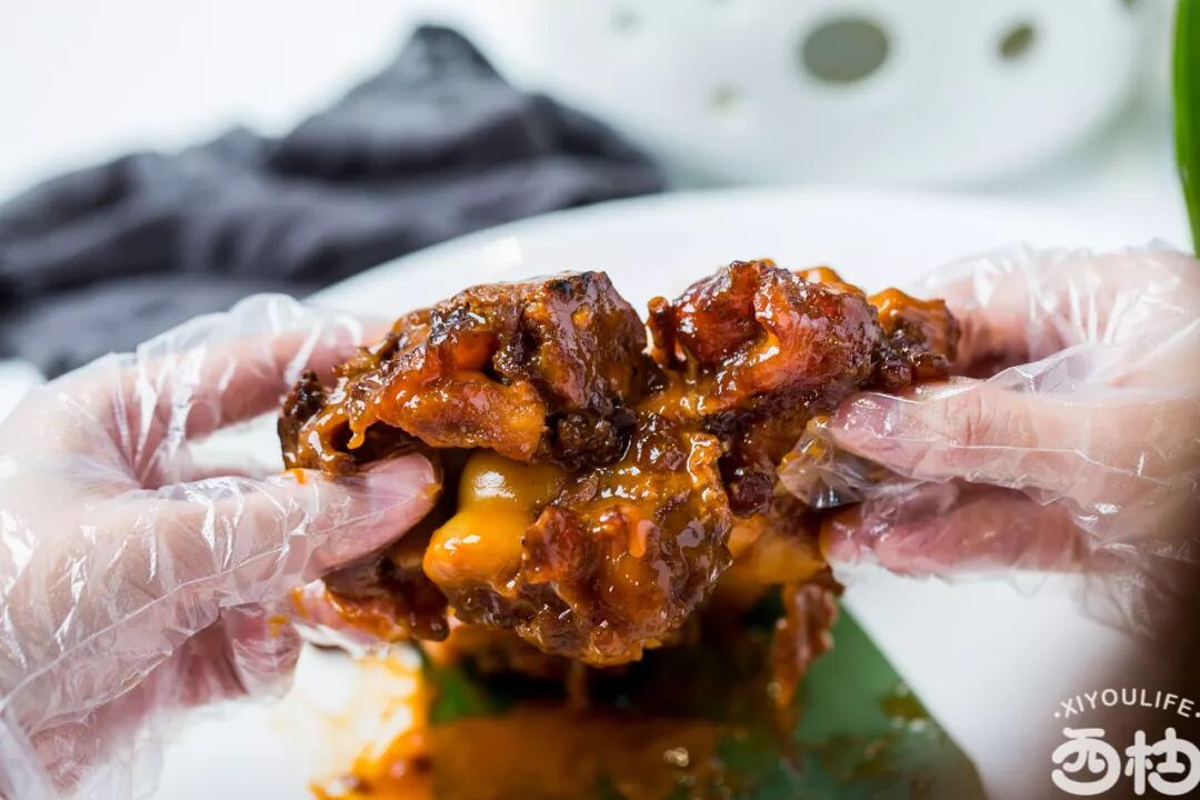 带上手套,直接抓起便开吃,这才真叫过瘾。大口大口吃着Q弹软糯的牛蹄肉,满足感噌噌噌的往上涨。