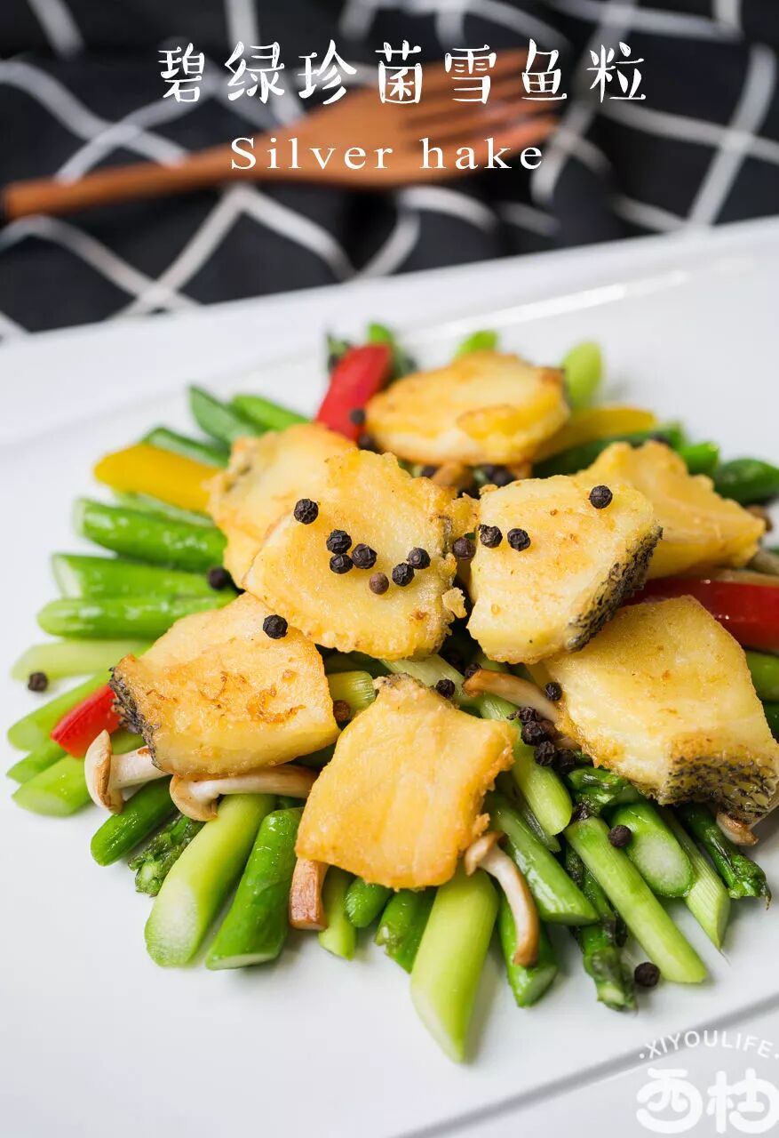 {碧绿珍菌雪鱼粒}