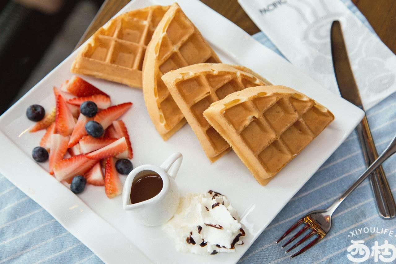 @试吃员·钻石王老明、小神儿:吃起来没有负担感又满足的华夫饼,配上旁边酸酸甜甜的水果很是解腻。