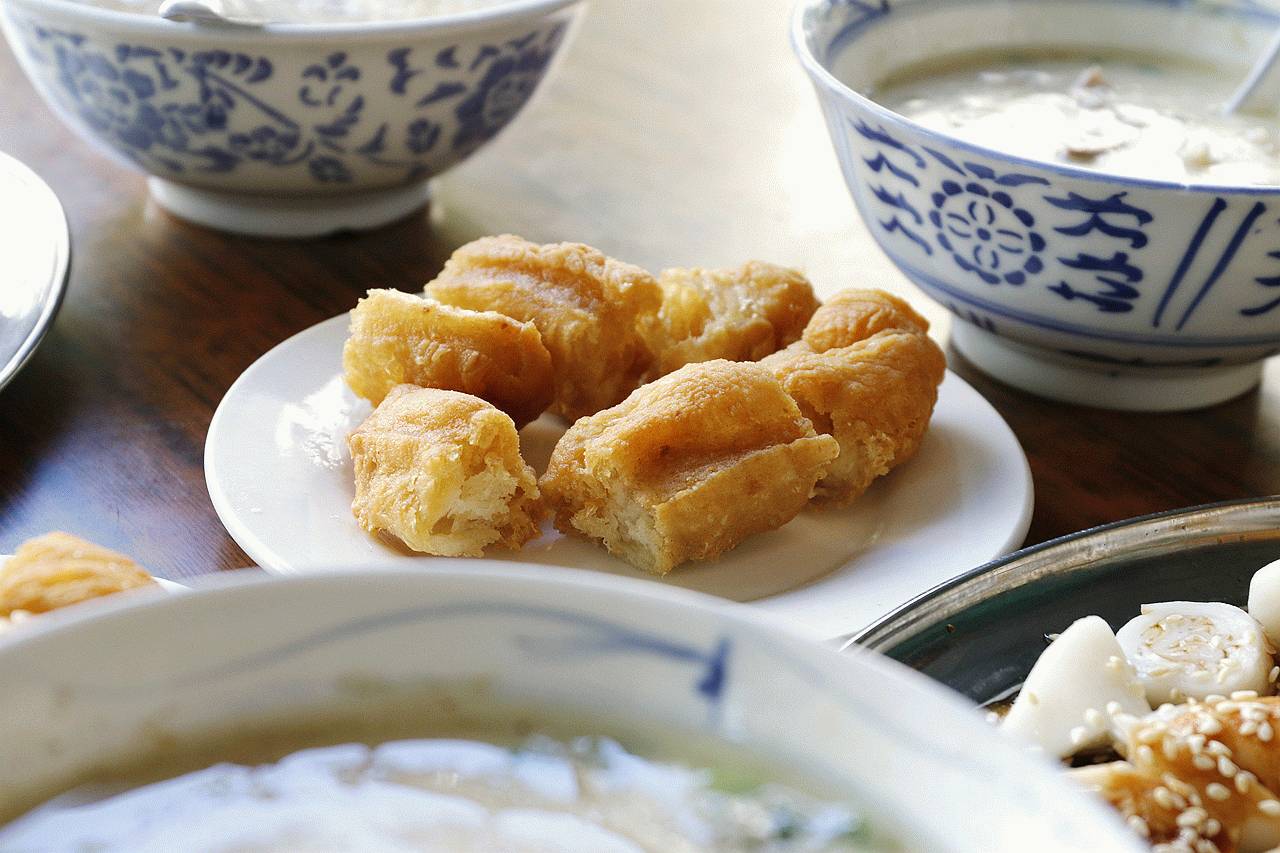 贴心的老板娘会将它切成一小段的,放入到粥里泡一会,简直是超完美的组合啊
