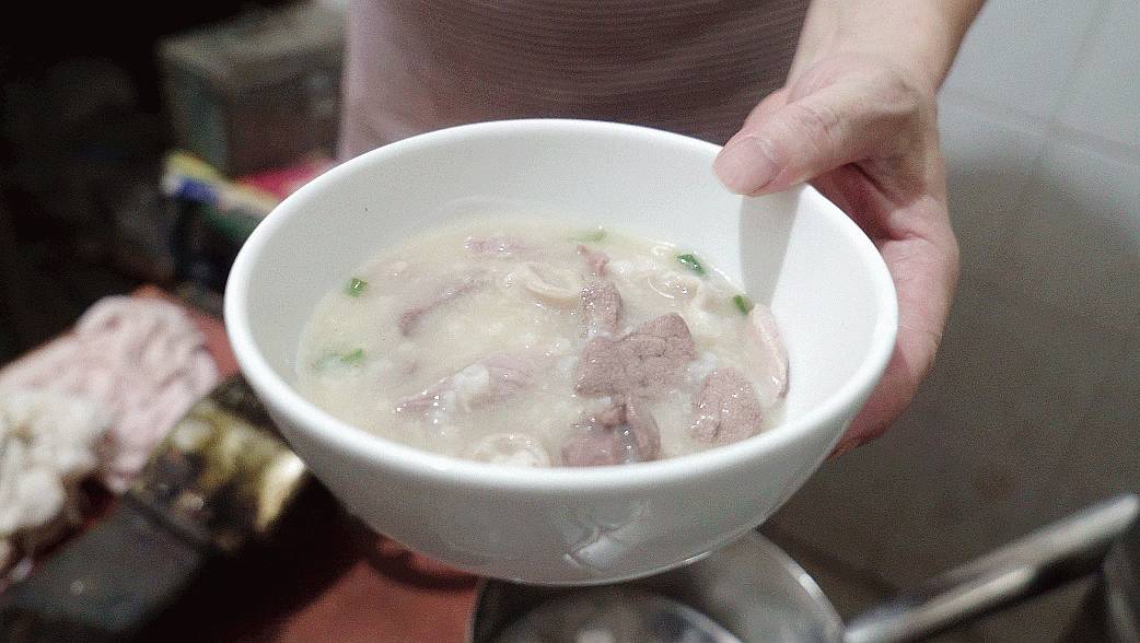 煲得绵绸柔软的粥底,加上每日新鲜的猪杂,一掀开锅盖,扑鼻而来的香味才是清晨最好的礼物