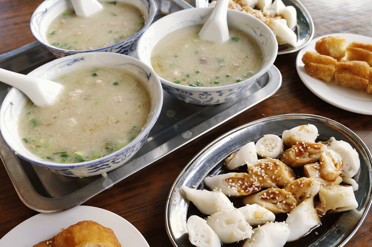 周记粥档经营的也只有四样食物:猪杂粥、甜酱肠粉、油条和油饼,品类虽然不多,却每一样都能深得人心。