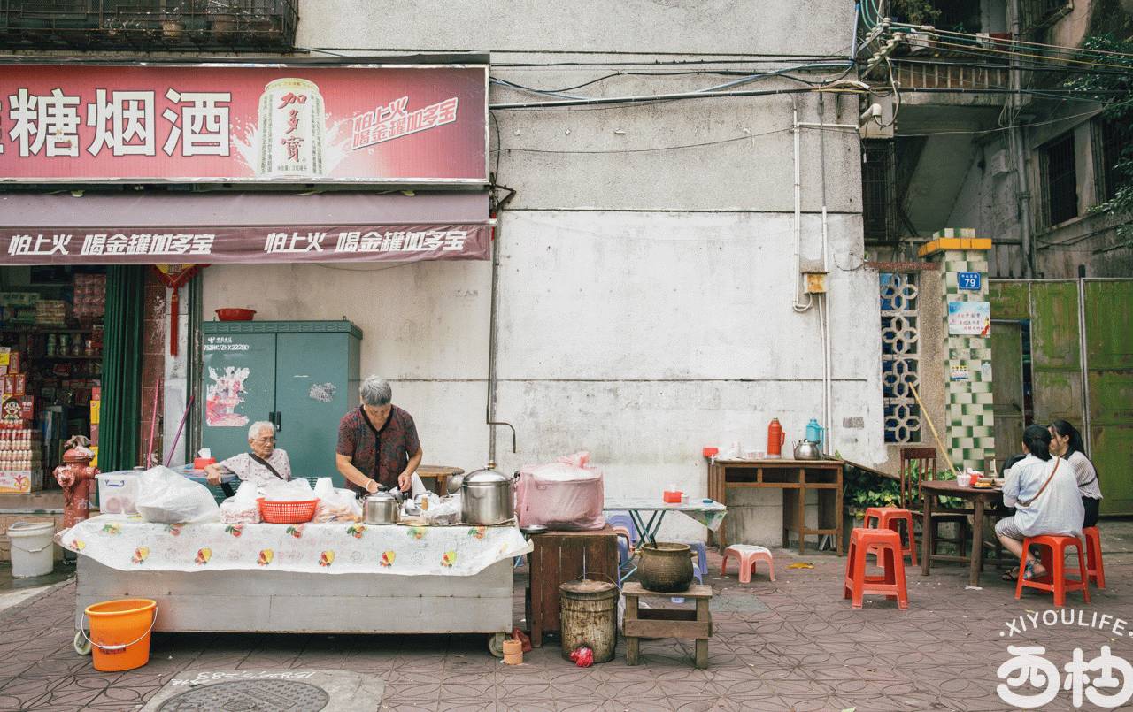一个老式的蜂窝煤炉,整齐摆好的锅碗瓢盆,旁边三两张不太规整的桌子,大锅摆好,碗勺铺开,属于这对老夫妻的一日之晨,就这么开始了。