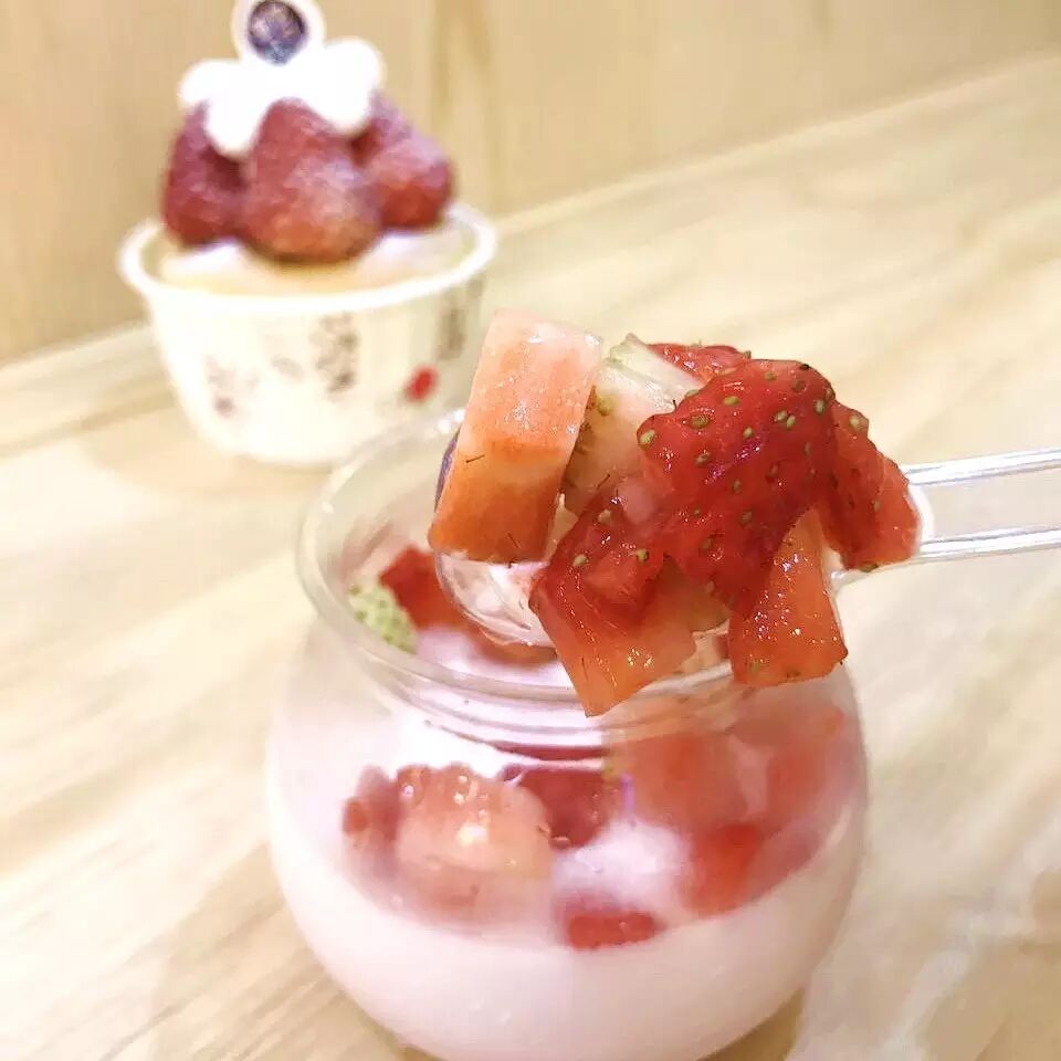 甜品永远都是女生无法抗拒的事物,更何况是加了草莓的奶冻和萌萌哒的杯子蛋糕!蛋糕果肉和清爽的奶冻口感融合在一起,杯子蛋糕的奶油也刚刚好,不甜不腻