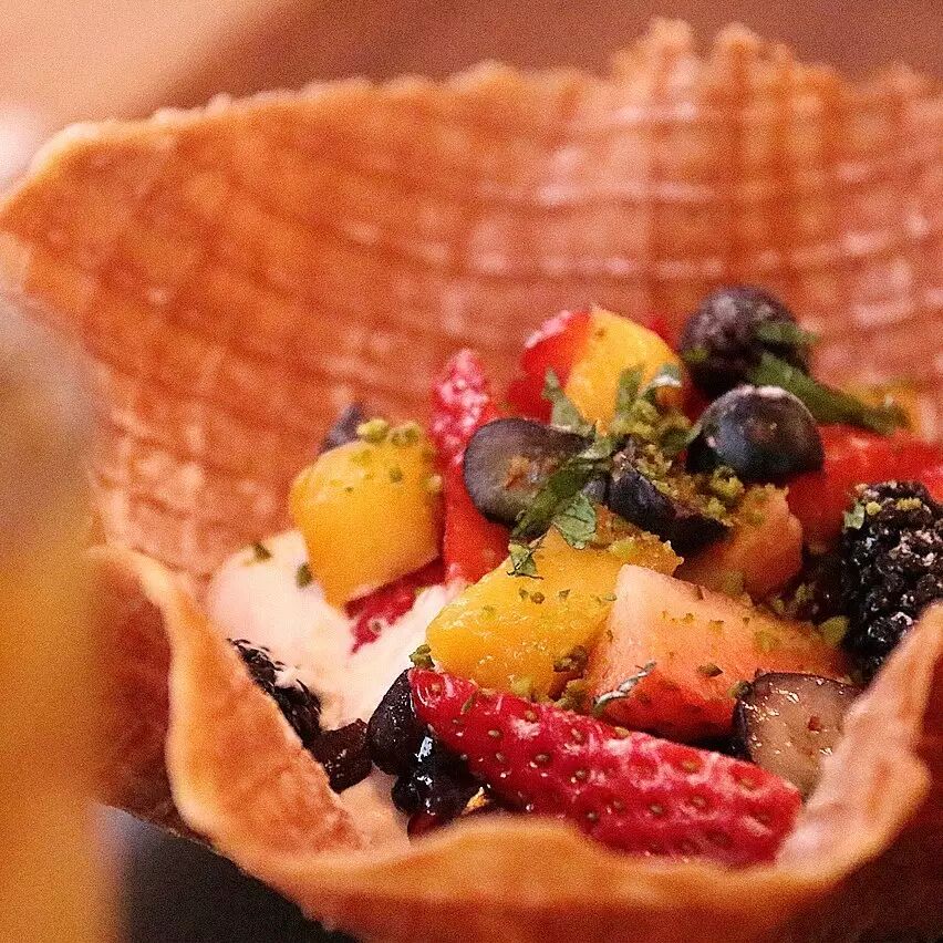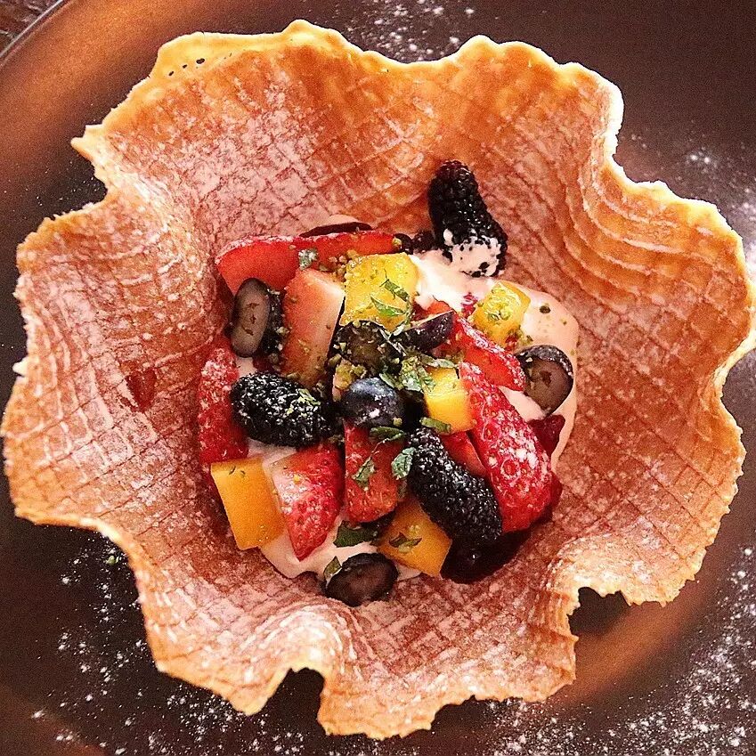 吃的时候要先将外层脆皮敲碎,搭配新鲜的水果与奶油一起吃,即便看起来是多么普通的食物,品尝到的确是无意的惊喜感。