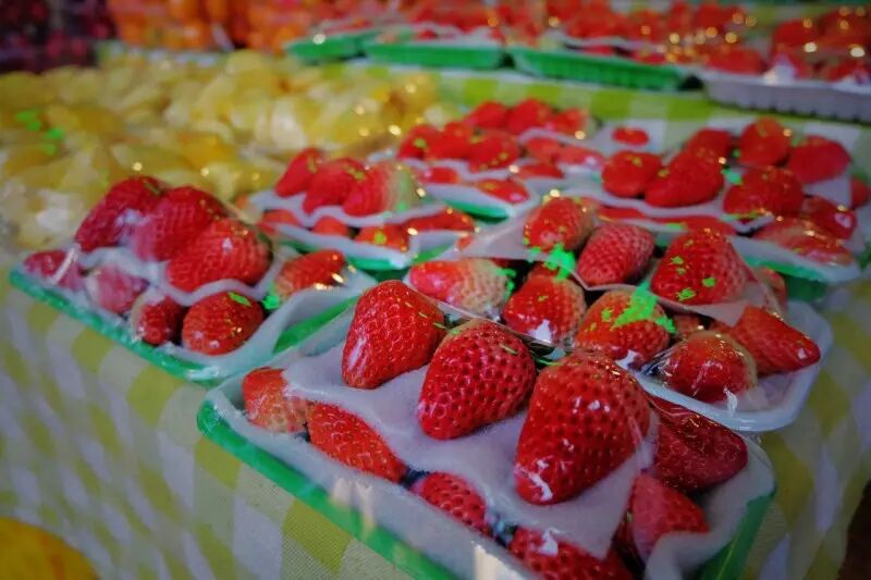 水果超市的诞生,也意味着街坊们的生活越来越小康。进口水果一摞摞,车厘子也成了市民日常中的普通水果,而草莓的种类更是多种多样,比如:奶油草莓…