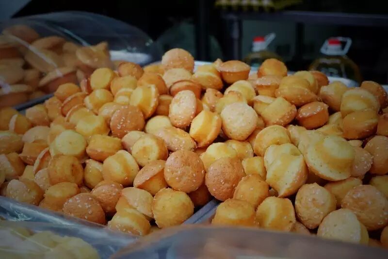 下午,有摆摊很久的阿姨推着小车来卖惠州小吃,阿姨们大多数都是住在附近的居民。她们通过自身的手艺做出一些惠州人常见的糕点,比如十月朝才见到的逆糍,现在已经很少人卖了。