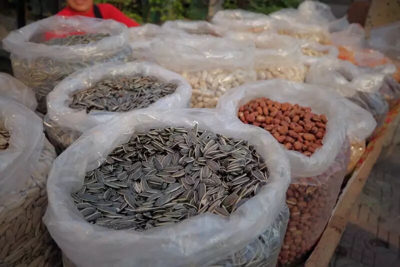 当然,也有推着三轮车售卖瓜子花生这种小零嘴的。