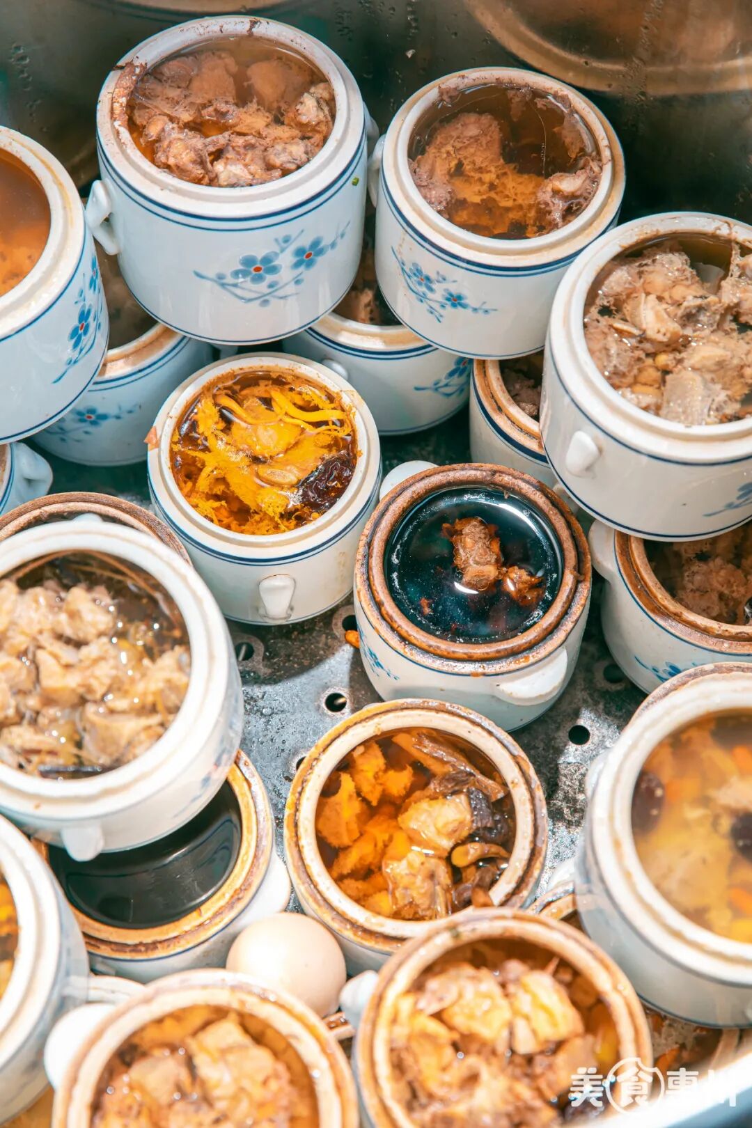 广东人离不开汤,一盅好汤滋养润喉。在这里有20多种汤可供选择,从天还没亮就开始准备,蒸好的药材汤丝丝入味,半碗都是料,精华都融化在了汤里。