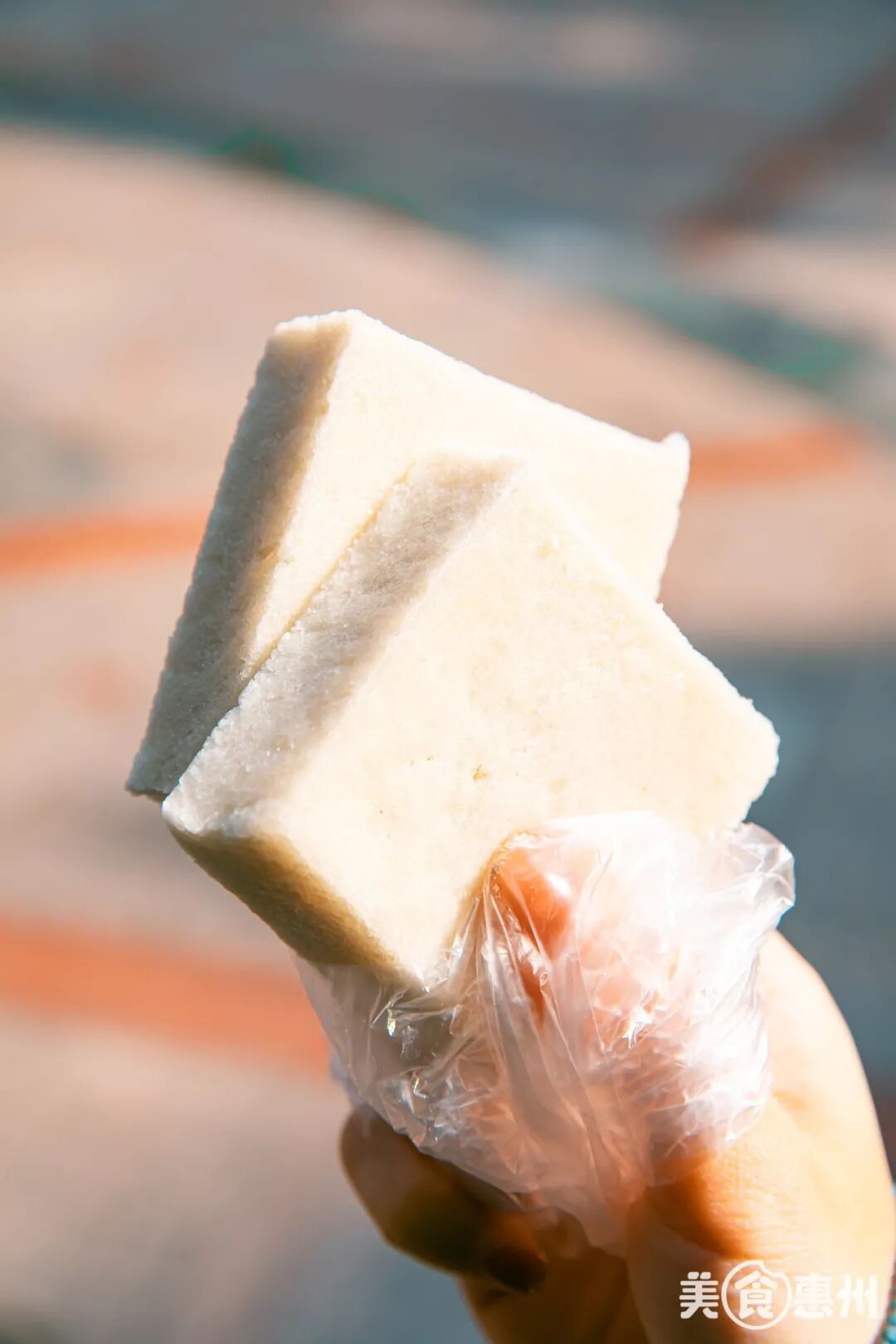 甜粄,北方俗称的年糕,惠州民间称之为“大笼粄”。糯叽叽大笼粄是小编的心头好,放在锅中煎至两面微焦,咬上一口就能拉的很长,软糯又不粘牙。