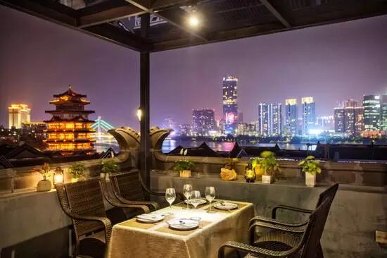 夜幕下繁星点点,与步行街隔江相望,在这新老城区交汇处,繁华而不喧闹,伴着江景惬意的享受属于你们的时光。