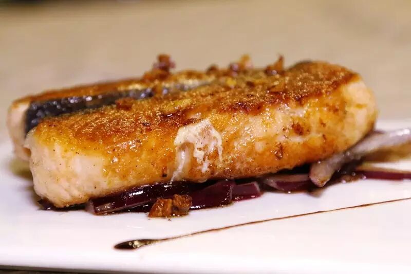 香煎大西洋银雪鱼佐香芝洋葱汁