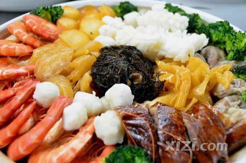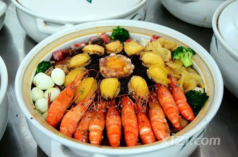 来看看围炉共飨的靓盆菜,一个盆菜内有材料20多种,而准备时间更需足足几日。