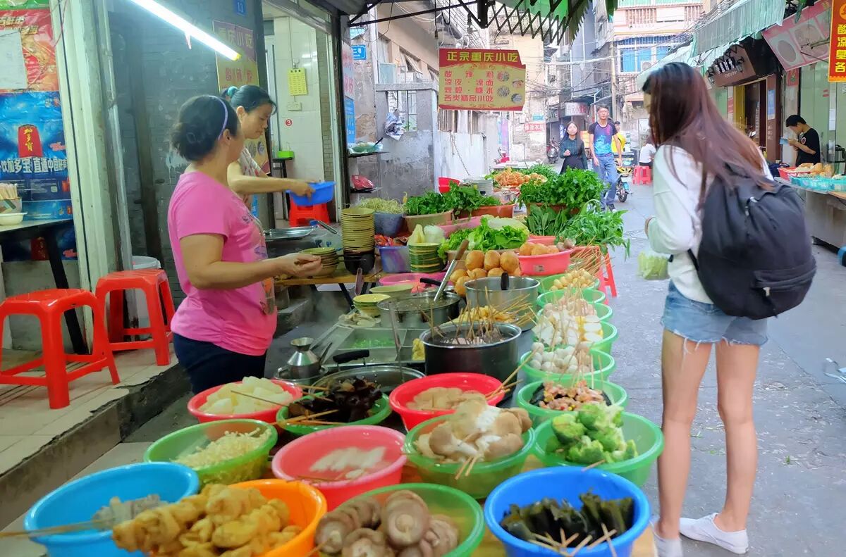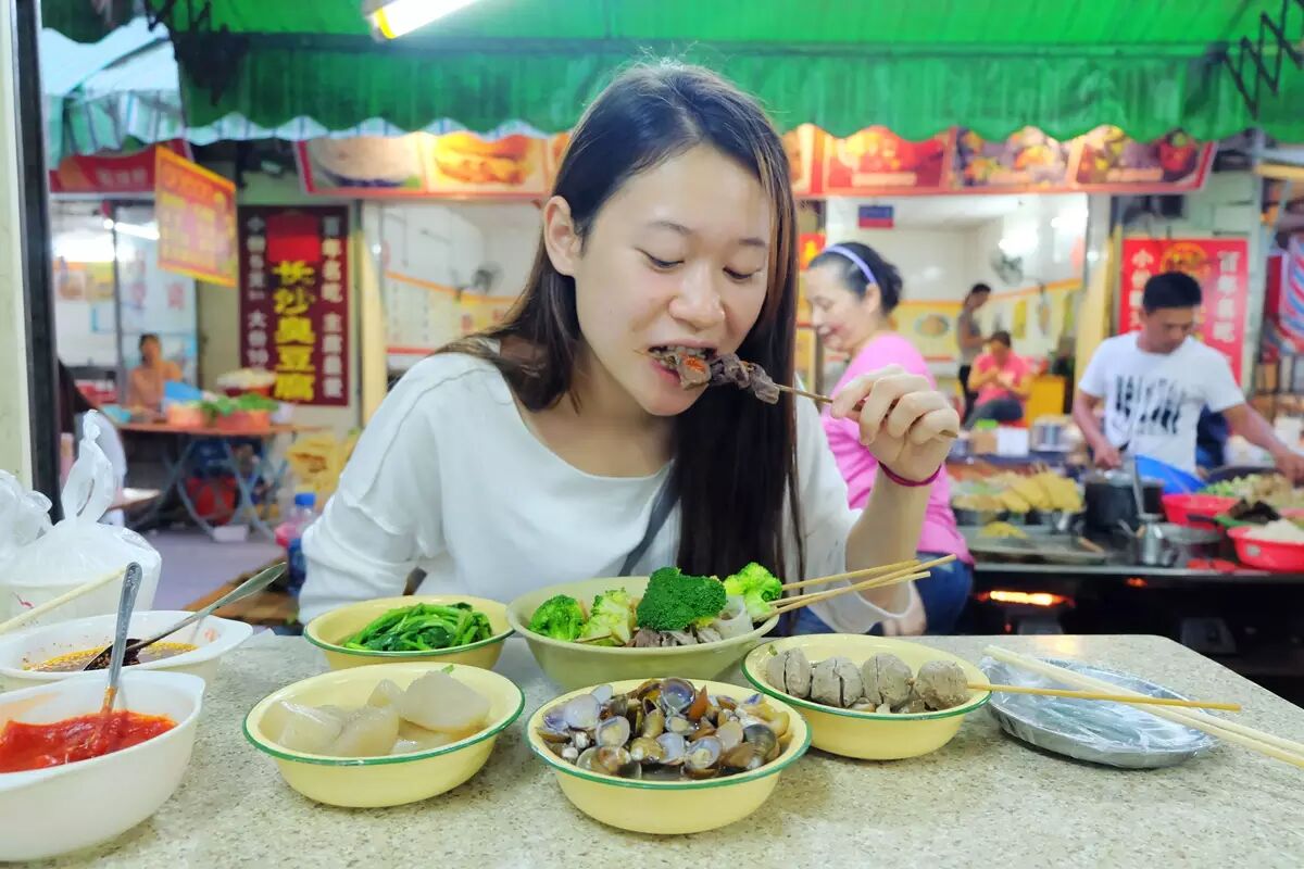 坐在小摊面前,看着烫菜摊老板捣鼓堆在她面前的新鲜食材,点一瓶维他奶,享受着自己钟情的食物,三五好友在食物的香气中谈论着自己的趣事,闲言碎语中透露着烫菜热辣的气息。