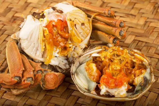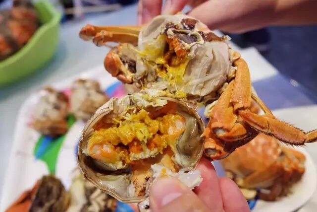 只能是大闸蟹那满满当当的蟹黄啊!!