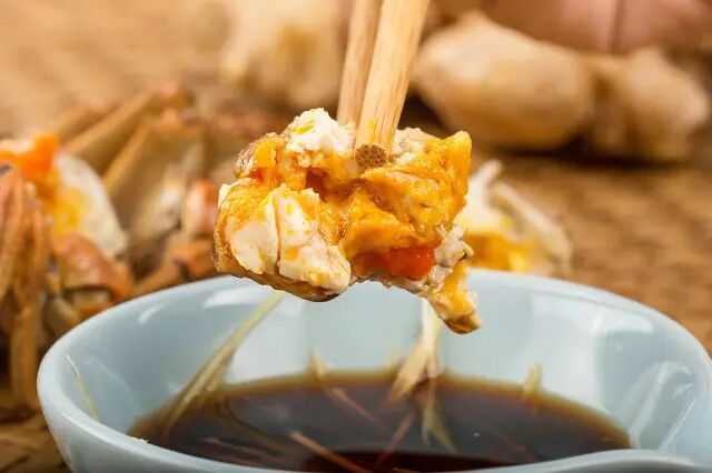 挑出蟹黄,蘸上专门配备的蟹醋,蟹醋的酸味,将蟹黄的鲜美衬托的更加的肥美鲜香。