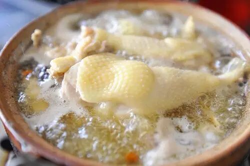 药材鸡煲的正确打开方式:先勺起满满一碗鸡汤,喝完汤再吃鸡肉。