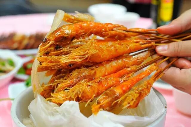 有颜值有实力的盐插虾,对于虾控来说真的不能再忍了!竹签串着吃,别有一番趣味。