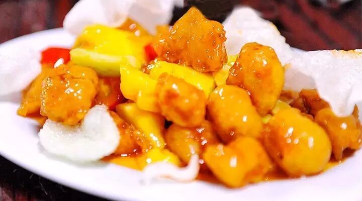 店里的招牌咕噜肉,几乎是到店必点。裹浆面粉经过发酵,蓬松脆口,酸甜度也刚好,一点也不呛人,菠萝和番茄调味,做得相当有水平!